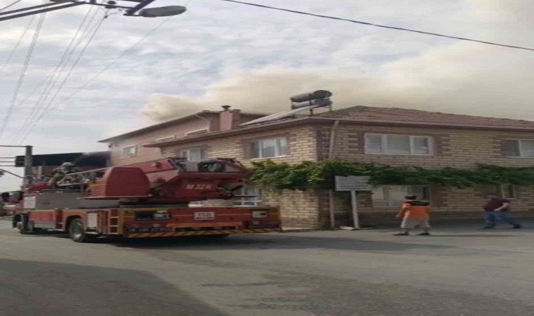 Bursa’da iki katlı bir binanın teras kısmı alevlere teslim oldu. İtfaiye ekiplerinin müdahalesiyle kontrol altına alınan yangın kameralara yansıdı.