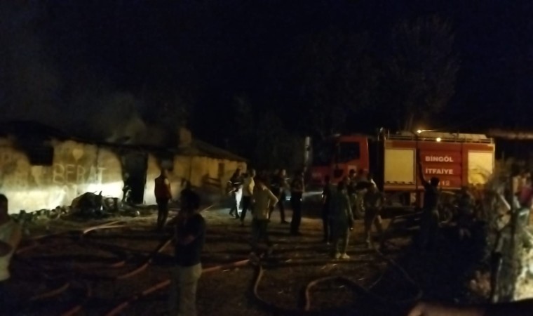 Bingöl merkeze bağlı bir köyde çıkan yangında ahırlar alev aldı. Olayda 2 büyükbaş hayvan telef oldu.