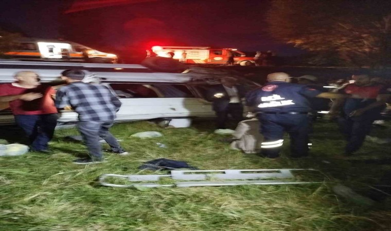 Bingöl’de ata çarpan minibüsün şarampole devrilmesi sonucu meydana gelen kazada 2’si ağır 13 kişi yaralandı.