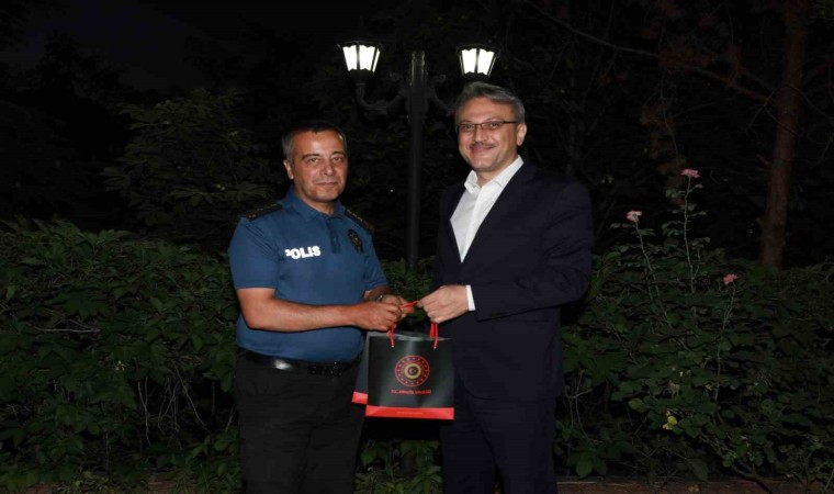 Vali Ekinci hem Durak’a hem de Canbolat’a hatıra amaçlı hediye takdim etti.