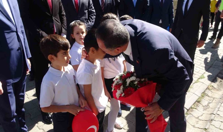 Vali Usta’nın konuşmasının ardından ilkokula yeni başlayan öğrencilere, akranları tarafından gül takdim edilirken, tören valinin sınıf ziyaretinin ardından sona erdi.