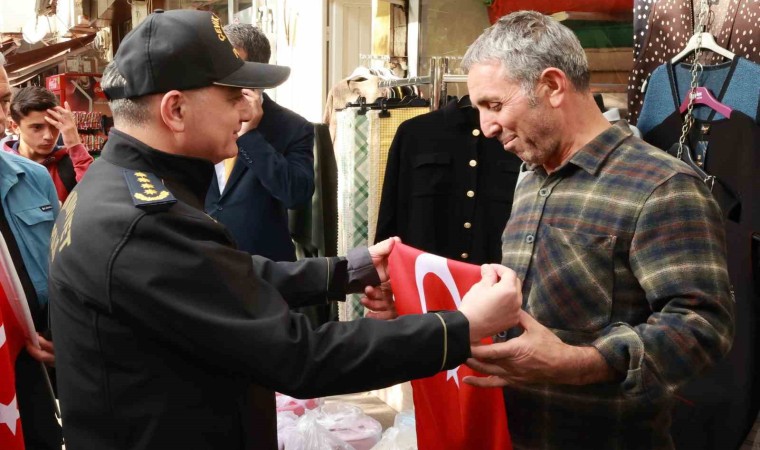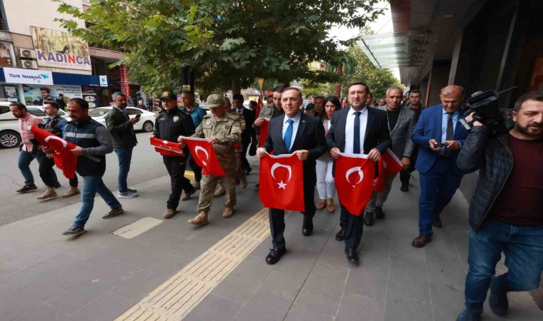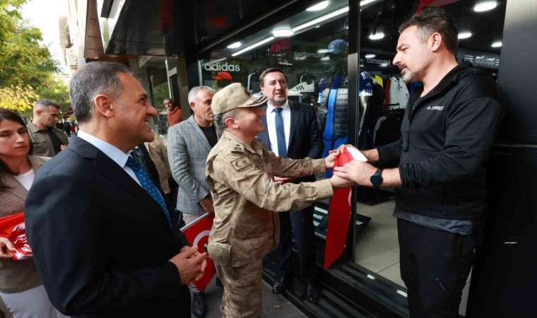 Bingöl’de Cumhuriyet’in 100. yılı nedeniyle esnaf ve vatandaşlara Türk bayrağı dağıtıldı.