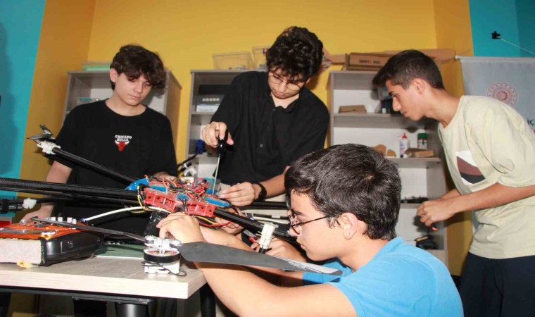 Okullarından arta kalan zamanlarda STEM Merkezine gelen öğrenciler önce bilgisayar başına geçerek yapmak istedikleri projeyi tasarlıyor, sonra ise fikir alış verişi yaparak yazılımlarını yapıyorlar. Yapılan yazılım ve tasarlama işleminin ardından CNC makinesinde tasarladıkları projenin ana gövdesini ve iskeletini yapan öğrenciler bu kez iç donanım ve ekipmanlarını birleştirerek kullanılabilir yapay zekalı ürünler üretiyor. Dron üretiminde çalışan öğrencilerden Muhammed Yuşa Becerikli, “Yapay zeka ağırlıklı olarak bir sürü şey yapıyoruz. 3 boyutlu modelleme olsun, Kara araçları olsun, insan hava araçları olsun, insansız deniz araçları olsun bunların hepsini yapıyoruz. Ben burada daha çok yapay zeka alanı ile ilgileniyorum. CNC makinası ile burada yaptığımız her şeyin parçalarını biz yapıyoruz. Elektronik parçalar haricinde tüm parçaları biz ürettiğimiz için her alanda da bilgi sahibi oluyoruz” şeklinde konuştu.