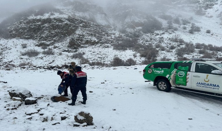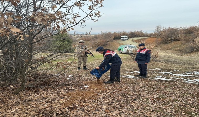 Bingöl’de jandarma ekiplerince soğuk havalarda yem bulmakta zorlanan hayvanlar için doğaya yiyecek bırakıldı.
