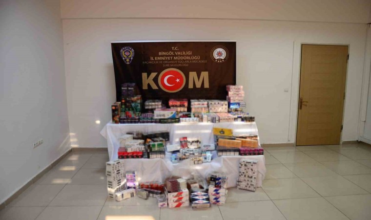 Bingöl İl Emniyet Müdürlüğüne bağlı Kaçakçılık ve Organize Suçlar Şube Müdürlünce yapılan çalışmalar neticesinde, cumhuriyet savcısından alınan karar kapsamında yapılan adli arama neticesinde, 5 bin 59 paket sigara, 34 adet elektronik sigara, 8 kilo kıyılmış tütün, 212 puro, 16 paket (680 gram) pipo tütünü, 3 bin 600 dal boş makaron, 560 doldurulmuş makaron, 50 dal cigarillos ele geçirildi. Operasyonda Kaçakçılıkla Mücadele Kanunu suçundan 1 şüpheli şahsa adli soruşturma başlatıldı.