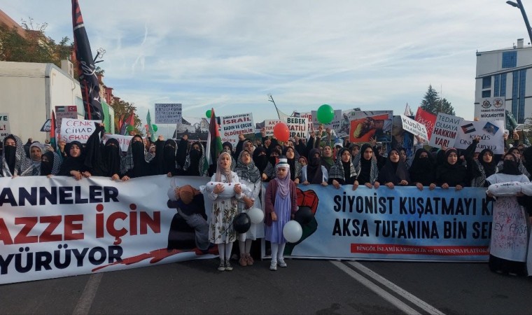 Bingöl’de STK’lar öncülüğünde ‘Anneler Gazze İçin Yürüyor’ protesto gösterisi için bir araya gelen yüzlerce kadın, Filistin için destek yürüyüşü gerçekleştirdi. Ulu Camii önünde toplanan kalabalık, Gazze’de yaşanan katliama dikkat çekmek için ellerinde kanlı bebek maketleri ile Telekom Kavşağına kadar yürüdü.