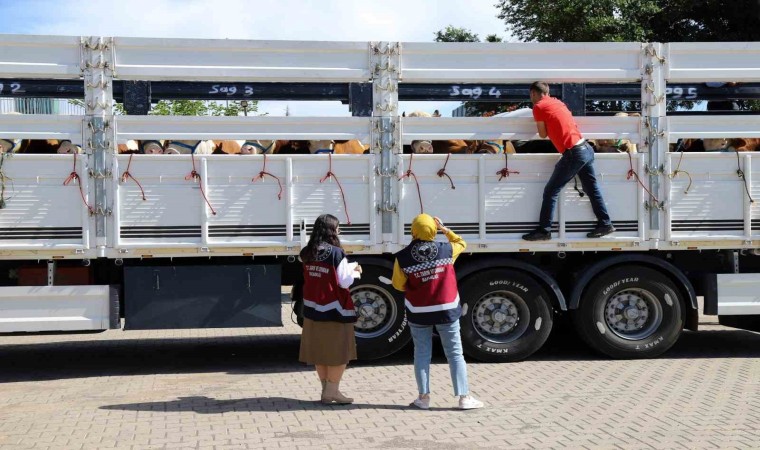 Bingöl’de Tarım ve Orman İl Müdürlüğü koordinesinde kurbanlık sevkiyatları başladı. Bursa’ya gönderilmek üzere 105 büyükbaş hayvan kontrol edildikten sonra yola çıktı. Tarım ve Orman İl Müdürlüğünden yapılan açıklamada, hayvanların sağlık muayenelerinin yapıldığı belirtilirken, ’’İlimizden Bursa İli Osmangazi ilçesi kurban pazarına gitmek üzere 105 büyükbaş hayvan sevki yapıldı. Sevk edilecek kurbanlık hayvanlar müdürlüğümüz Hayvan Sağlığı Yetiştiriciliği ve Su Ürünleri Şube Müdürlüğü yerleşkesinde veteriner hekimler tarafından sağlık muayeneleri yapılarak ve hayvan refahı yönünden sevke uygunluğu kontrol edildi. Dezenfeksiyon işlemi yapılan 5 tır yurtiçi veteriner sağlık raporu düzenlenerek, vatandaşlarımızın kurbanlık ihtiyaçlarını karşılamak üzere pazar yerine gönderildi’’ ifadelerine yer verildi.