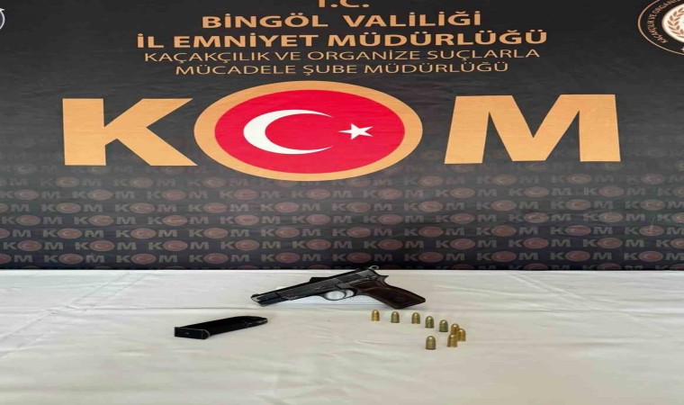 Bingöl Emniyet Müdürlüğü KOM ekiplerinin çalışmaları neticesinde, 1 adet Brownig marka silah, 1adet şarjör 9 adet 9 çarpı 19 milimetre fişek bulunarak muhafaza altına alındı. Şahıs hakkında 6136 SKM suçundan adli işlem başlatıldı.