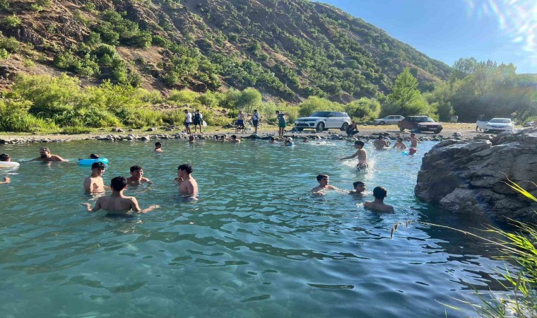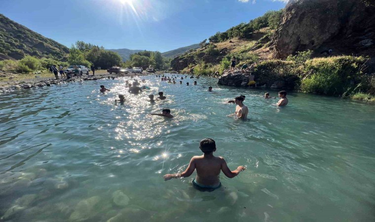 Bingöl’de sıcak havadan bunalan vatandaşlar, Ilıcalar Beldesindeki derede oluşturulan gölette serinliyor.