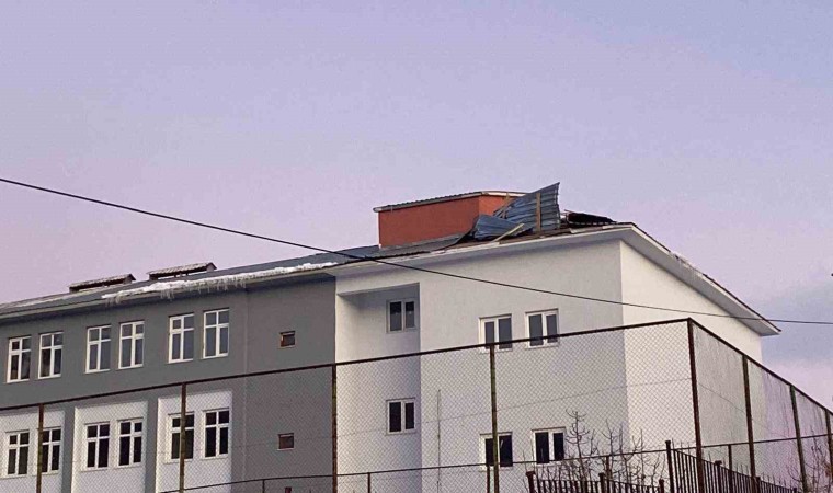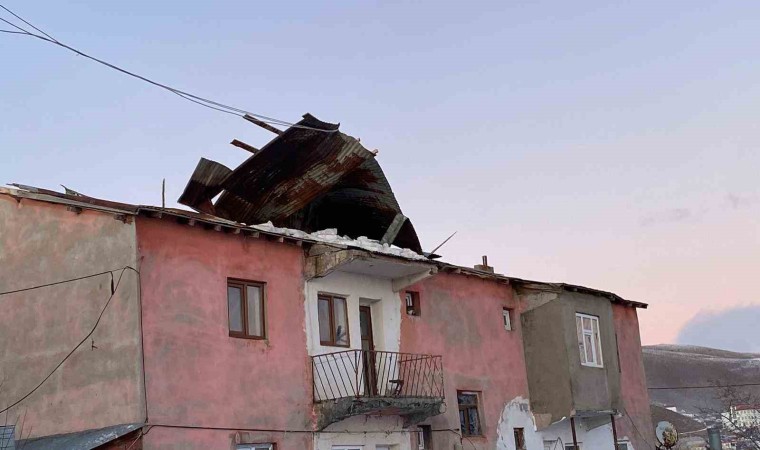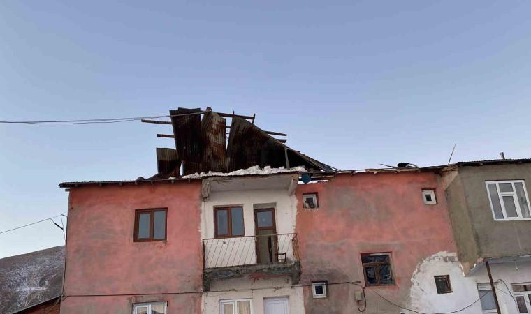Bingöl’ün Karlıova ilçesinde şiddetli rüzgar ve tipi nedeni ile ev ve okulların çatısı uçtu.