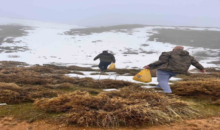 Bingöl Doğa Koruma ve Milli Parklar Şubesi ekiplerince, kırsal alanlarda yaban hayvanları için yemleme çalışması devam ediyor.