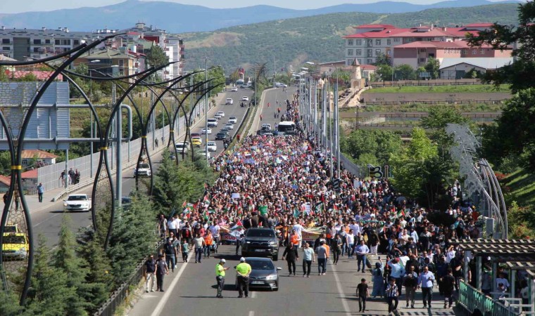 İsrail’in Gazze’yi işgali ve uyguladığı zulmü protesto etmek amacıyla Bingöl’de yaklaşık 15 bin kişi 6 kilometre boyunca yürüyerek Gazze’ye destek oldu.