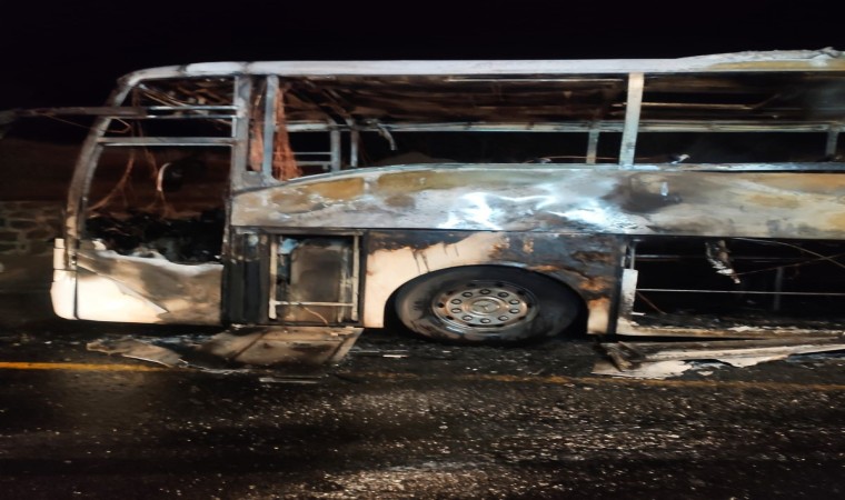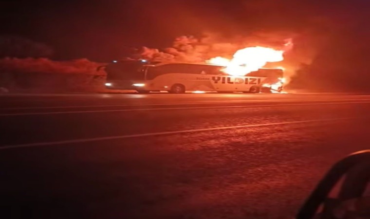 Bingöl’ün Solhan ilçesinde şehirlerarası yolcu otobüsü seyir halindeyken alev aldı. Olayda ölen ya da yaralanan olmazken, araç kullanılamaz hale geldi.