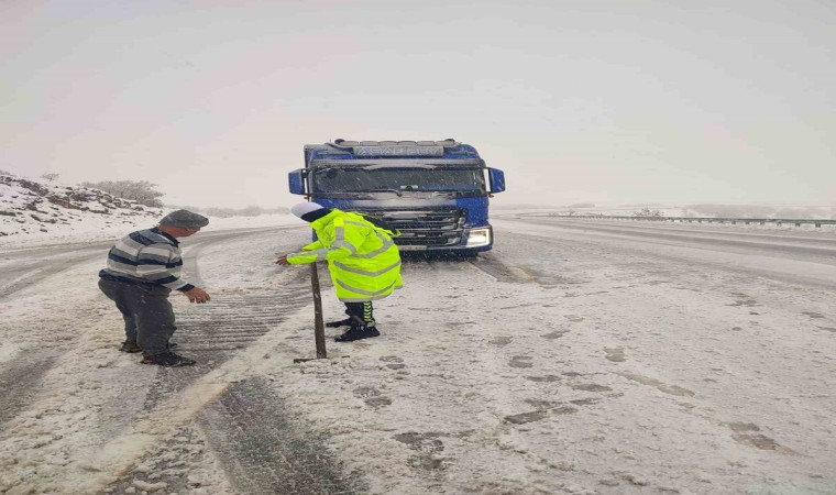 Bingöl’de etkili olan kar yağışı sonrası yolda kalan sürücülerin imdadına polis ekipleri yetişti.