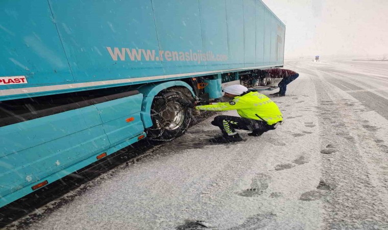 Bingöl’de kar yağışı etkili oldu. Bir anda bastıran kar yağışına hazırlıksız yakalanan sürücüler, araçlarıyla yolda kaldı. Sürücülerin imdadına ise polis ekipleri yetişti. Araçları iterek güvenli noktaya çeken ekipler, aynı zamanda zincir takmaya da yardımcı oldu.