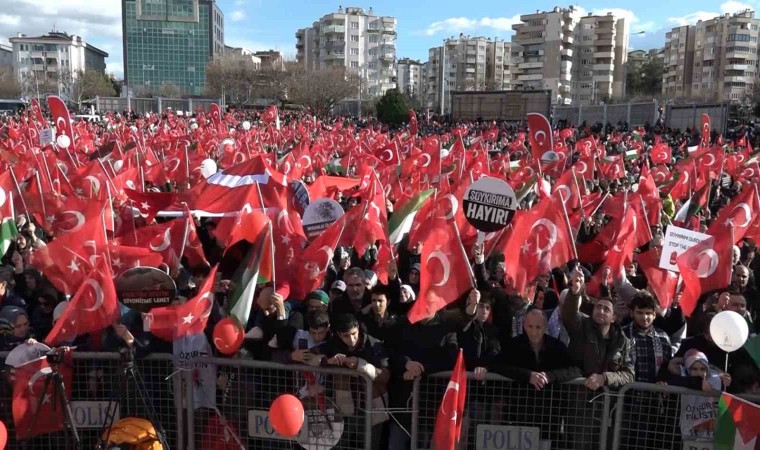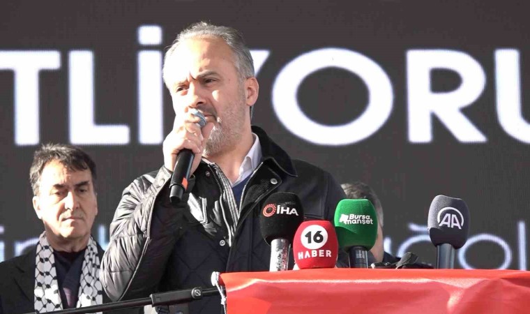Filistin’e Destek Platformu’nun organize ettiği, Bursa Gönüllü Kuruluşlar Platformu’nun desteklediği programda, yaklaşık 30 bin kişi Nilüfer ilçesindeki Fatih Sultan Mehmet Bulvarı’nda bir araya geldi. Ellerinde Türk ve Filistin bayraklarıyla alana gelen vatandaşlar, İsrail’i ve terör örgütü PKK’yı lanetleyen sloganlar attı, dövizler açtı.