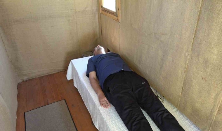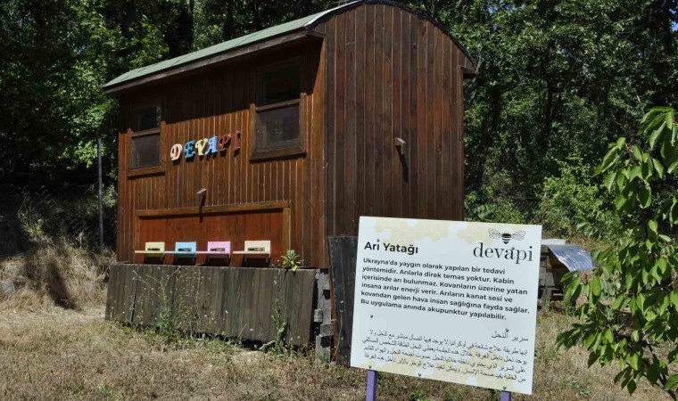 Bursa’da bir tıbbi aromatik bahçede yer alan terapi yöntemi, yerli ve yabancı turistler tarafından ilgi görüyor. Kabin içerisinde yer alan arı kovanın üzerinde uzanan insanlar daha dinç kalkıyor.
