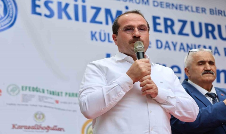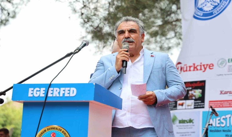 Renkli görüntülere sahne olan şölende kürsüye gelerek konuşma gerçekleştiren Eskiizmir Erzurumlular Kültür ve Dayanışma Derneği Başkanı Dursun Kurtlu, “Kanuni Sultan Süleyman Erzurum’u kesin olarak Osmanlı topraklarına kattı ve Erzurum bu fetihten sonra Türk yurdu olarak günümüze geldi. Yüzyıllarca Türklerin yurdu olan Erzurum, 1877-1878 ve son olarak 1. Dünya Savaşı’nda 1916 yılında Rus ordularının hedefi oldu. Osmanlı askerleri 93 Harbi denilen bu mübadeleyi de 12 Mart 1918 de zaferle taçlandırdı. 3 Temmuz 1919’da Erzurum’a gelen Mustafa Kemal Atatürk, Anadolu’nun çeşitli illerinden gelen 56 delege ile Kazım Karabekir Paşa’nın ev sahipliğinde Erzurum Kongresi’ni gerçekleştirdiler. Türkiye Cumhuriyeti 29 Ekim 1923 yılında kurulurken, Erzurum da bu genç Cumhuriyetin en önemli şehirlerinden biri olarak yerini aldı. Erzurum’da yetişen maneviyatımızı aydınlatan gönül ehli, Allah dostları da vardır. Bunlardan bazıları da şu isimlerden oluşur; Erzurumlu İbrahim Hakkı Hazretleri, Abdurrahman Gazi Alvarlı, Efe Habib Baba gibi daha nice ilim insanımız da İslam tarihinde yerini almıştır. Cenabı Allah cümlemizi ruhaniyetlerinden istifade edenlerden eylesin, Amin. Kıymetli hemşerilerim, Erzurumlu ozanlarımız da Türk kültürüne önemli katkılarda bulunmuştur. Sümmani Baba, Erzurumlu Emrah, Nihani Baba, Mustafa Ruhani, Mevlidi İhsani, Yaşar Reyhani gibi daha isimlerini sayamadığımız birçok ozanımızın yanı sıra ünlü sanatçımız İbrahim Erkal’ın da unutulmaz eserleri vardır. Hepsine Allah’tan rahmet diliyorum” ifadelerine yer verdi.
