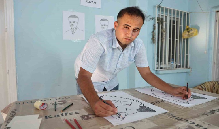 Binlerce kez deneme yaparak 2 elle resim çizme yeteneğini geliştirdiğini dile getiren Kozan, “Elektrik ustasıyım, iki elimle iki resim çiziyorum. Bir yerlere gelmek istiyorum. Bu yüzden hevesliyim ve hırslıyım. 2 yıldır resim çiziyorum. YouTube da araştırdım ve iki elle aynı anda 2 resim çizmek aklıma fikir olarak gelmişti. Bunu kimsenin yapmadığını öğrendim. Bir fark oluşturmak için bu alana yöneldim. İki elle aynı anda resim çizmek için binlerce kez denemeler yaptım. Binlerce kez deneyerek başardım. Resmin yanında iki kitapta yazdım. Gündelik olarak elektrik ustalığı yapıyorum. Bazı zamanlar ustaya yardımcı olmak için geliyorum” dedi.