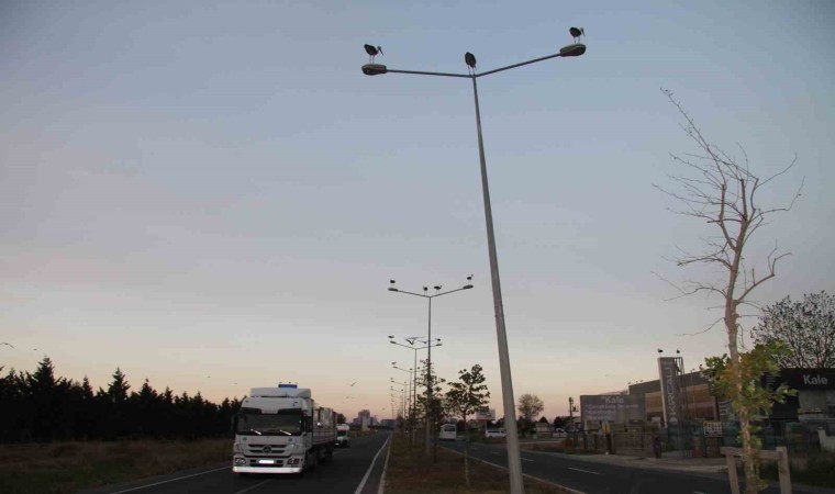 Kamyonunu yol kenarına çekerek, aydınlatma direklerine konan leylekleri izleyen Adil Toprak, "Leylekler çok güzel duruyor. Bizim gibi uzun yol yolcusu, kafası esti mi istediği yerde durabiliyor. Güzel yani, hoş bir görüntü. İki üç gündür akşam saatlerinde buradalar. Çok hoş bir görüntü veriyor. Gündüz ayrı bir güzellik, gece ayrı bir güzellik" dedi.