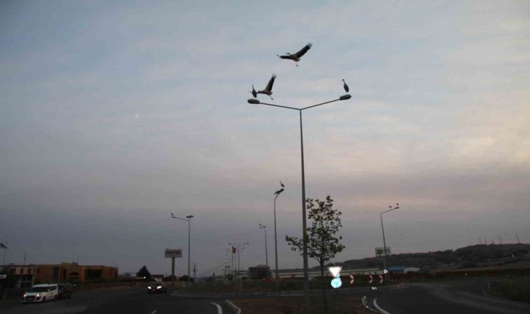 Tekirdağ’ın Çorlu ilçesinde, göç yolundaki leyleklerin aydınlatma direklerindeki görüntüsü görenleri hayran bıraktı. Binlerce kilometreden gelen leyleklerin aydınlatma direklerinde süslemesi, küçük çocuklar kadar yetişkinlerin de ilgi odağı oldu.