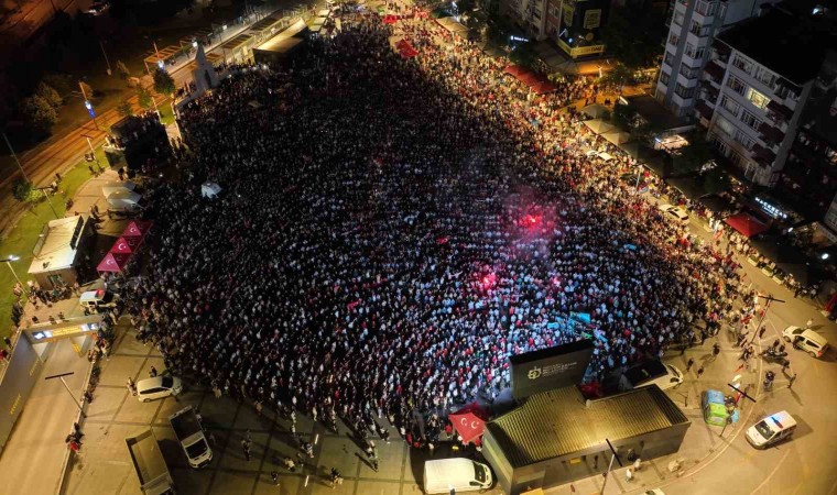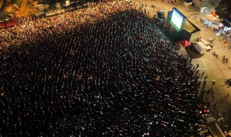 A Milli Futbol Takımı’nın EURO 2024 çeyrek final karşılaşmasında Hollanda ile karşı karşıya geldiği maçı binlerce Kocaelili dev ekranda izledi. Kocaeli Büyükşehir Belediyesi organizasyonuyla Kent Meydanı’nda kurulan dev ekranda maçı izleyen vatandaşlar, takımın golü ile büyük sevinç yaşadı. Davul zurna çalan, şarkı söyleyen binlerce kişi, milli takım için tek yürek oldu.