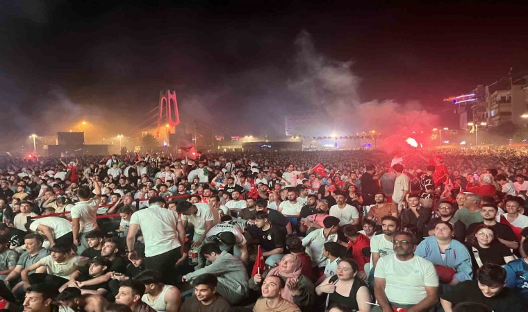 A Milli Futbol Takımı’nın Hollanda ile karşı karşıya geldiği EURO 2024 çeyrek final maçını Kocaeli’de binlerce kişi kurulan dev ekranda izlendi. Taraftarlar, golle ile birlikte büyük sevinç yaşadı.
