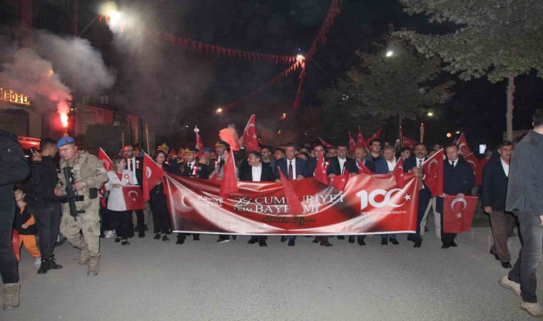 Türkiye Cumhuriyeti’nin 100. yıl kutlamaları çerçevesinde Şırnak Valiliği tarafından düzenlenen fener alayı ve bayrak yürüyüşüne binlerce vatandaş katıldı.
