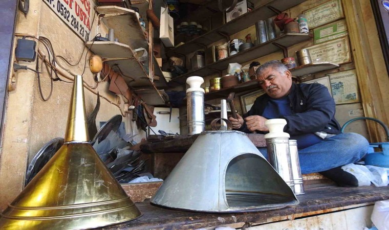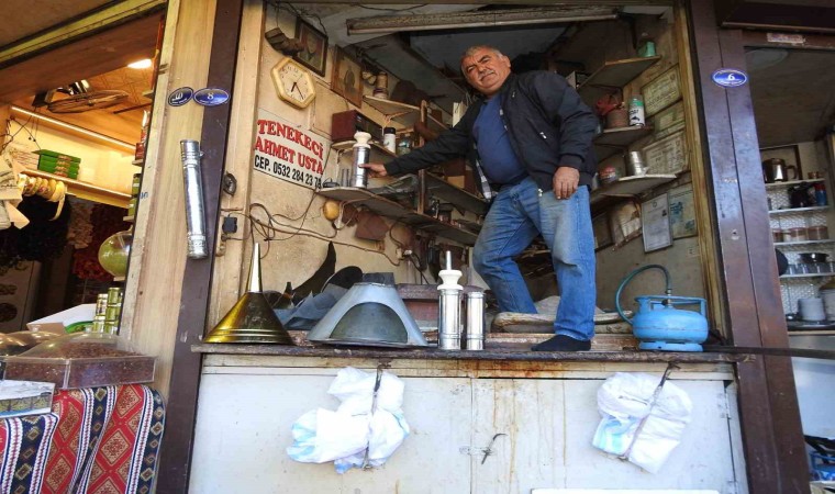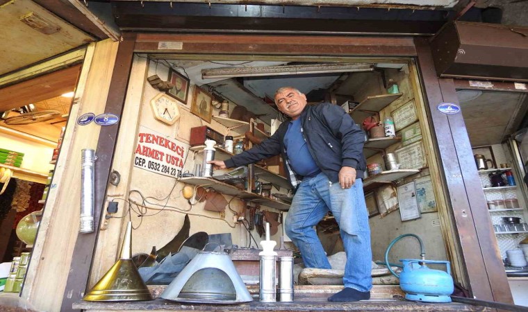 Gaziantep’te yaşayan Ahmet Telefoncu, yarım asırdır dedesinden babasına, babasından da kendisine kalan tenekecilik mesleğini bir buçuk metrekarelik dükkanında sürdürüyor.