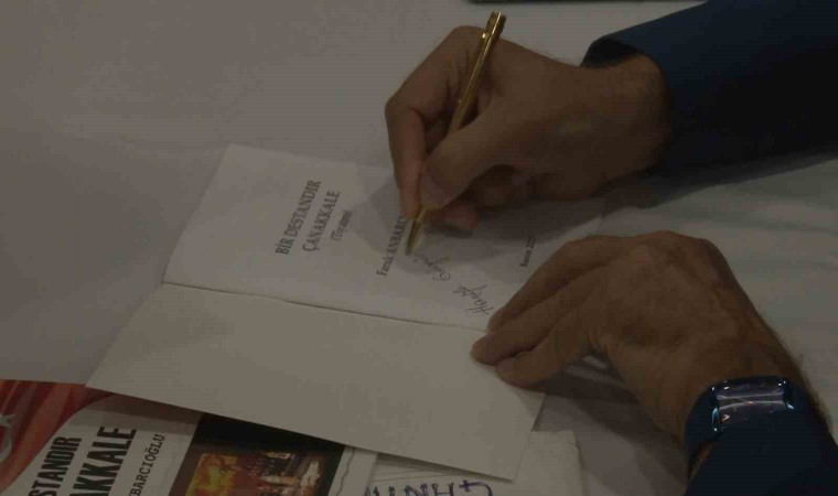 Anbarcıoğlu,” Benim Çanakkale şiirim vardı, bu şiiri Erdinç hocamızın ve ekibinin oynayabileceği bir şekilde senaryolaştırdık. 2009 yılından itibaren biz bu oyunu hiçbir ücret almadan 137 yerde sahneledik. Çanakkale muazzam bir zaferin adıdır, yokluktan zafere dönüşen bir isimdir. Kitabın içerisinde yaşanmış olayları anlatmaya çalıştım. Hakkı ile annesi ve hem kocası hem de oğlu şehit olan Adile teyzenin hikayesi var. Gerçek yaşanmış olayları kaleme aldım. Bizim Çanakkale’de çok gizli kahramanlarımız var mesela bunlardan birisi Bursa’nın Yenişehir ilçesinden Müstecip Onbaşıdır. O da arkadaşları gibi cepheye götürülüyor, 29 Ekim günü bir deniz altının periscobunu görüyor ve ateş ederek onu etkisiz hale getiriyor. Bir mehmetçik deniz altını rehin alıyor. Ben buradan yönetmenlere, yapımcılara sesleniyorum, ilgilenen olursa Müstecip Onbaşı’nın senaryosunu sizlerle seve seve paylaşabilirim. Bir Destandır Çanakkale kitabının arkasında da yazdığı gibi ’Bu kitap para ile satılamaz, bedeli Çanakkale’de ödenmiştir’ Bu kitabı benden isteyen okullara, kütüphanelere, derneklere, kuruluşlara seve seve armağan edebilirim" diye konuştu.