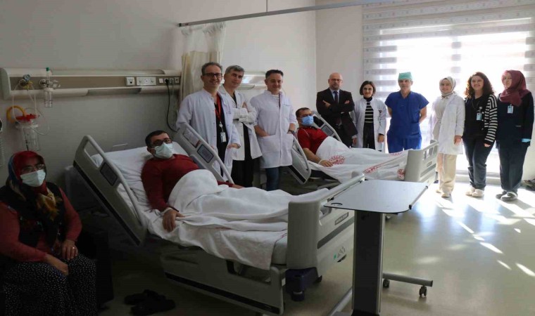 Beyin ölümü gerçekleştikten sonra organları bağışlanan kişiden alınan karaciğer ve böbrekler, Sakarya ve Samsun’da organ bağışı sırası bekleyen 3 hastaya yaşam umudu oldu. Hayatını kaybeden hastadan alınan karaciğer ve böbrekler, 3 ayrı hastaya nakledildi. Sakarya Eğitim ve Araştırma Hastanesi’nde böbreklerin nakli yapılan 43 yaşındaki Aydın Özkan ve 53 yaşındaki Hasan Yıldırım, başarılı geçen operasyonun ardından sağlıklarına kavuştu. Birbirlerini hiç tanımayan Özkan ve Yıldırım, bağışlanan böbrekle adeta bir aile gibi olduklarını belirtti. Diyaliz tedavisi oldukları süreçte kısıtlı yaşam sürdüklerini belirten ikili, organ nakli sonrasında hastayken yapamadıklarının hayalini kurmaya başladı. Şehir gezintileri, tatil turları ve istediklerini yemek için planlar yapan ikilinin hastane odasındaki diyalogları yüzlerde tebessüm oluşturdu.