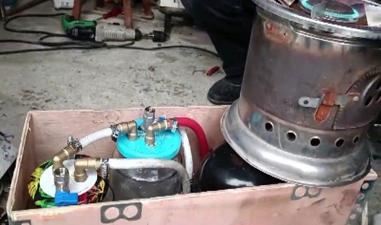 Kahramanmaraş’ta araştırmacı iki emekli vatandaş, yaptıkları sistem sayesinde bir ay kullanabilecekleri bir litre benzinden yaklaşık 300 litre gaz üretti.