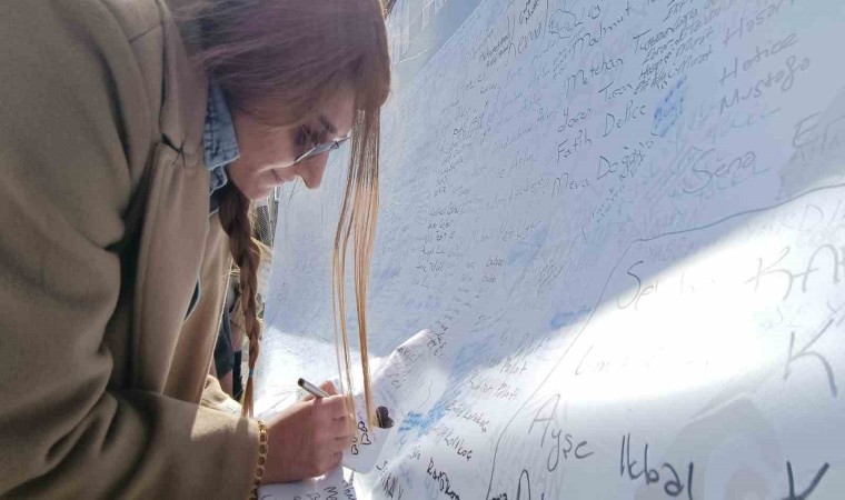 Bir yıl geçmesine rağmen depremde kaybettiği anne babasının oturduğu evin enkazına Mersin’den ilk kez gelen Gülistan Şahinkaya, bir sene geçmesine rağmen olayın şokunu yeni atlatabildiğini söyledi. Şahinkaya. "Şu an ilk defa mezarlarına gidip ağlayabileceğim aslında. Öldüklerinin farkına şu an vardım. Son 1 sene içerisinde çok kötü günler geçirdim. Yavaş yavaş toparlanmaya çalışıyoruz ama inşallah bu saatten sonra ülke olarak daha güçlü bir şekilde birlik ve beraberlik içerisinde oluruz diye düşünüyorum" diye konuştu. Gülistan Şahinkaya daha sonra depremde hayatını kaybeden yakınlarının isimlerini pankarta yazdı.