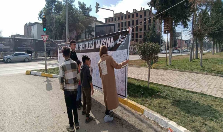 Adıyaman’da depremin olduğu 04.17’de durduğu için simge haline gelen saat kulesinin bulunduğu meydanda üzerinde depremde hayatlarını kaybedenlerin isimlerinin yazıldığı pankart ilgi odağı oldu.