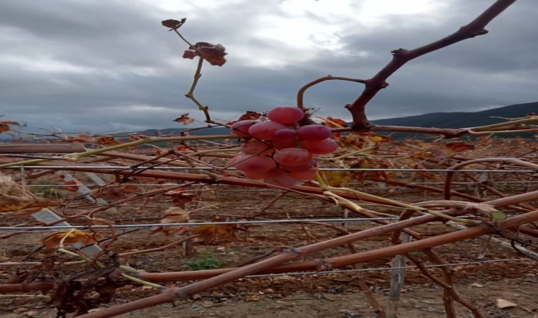 Manisa’nın Sarıgöl ilçesinin Emcelli Mahallesindeki tarım işçileri bir yandan bağ budama işlemi yaparken bir yandan da budanan bağlarda kalan ve bağcılar arasında "çoban üzümü" olarak bilinen üzüm salkımlarını ocak ayında dalından kopararak yemenin keyfini yaşıyor.