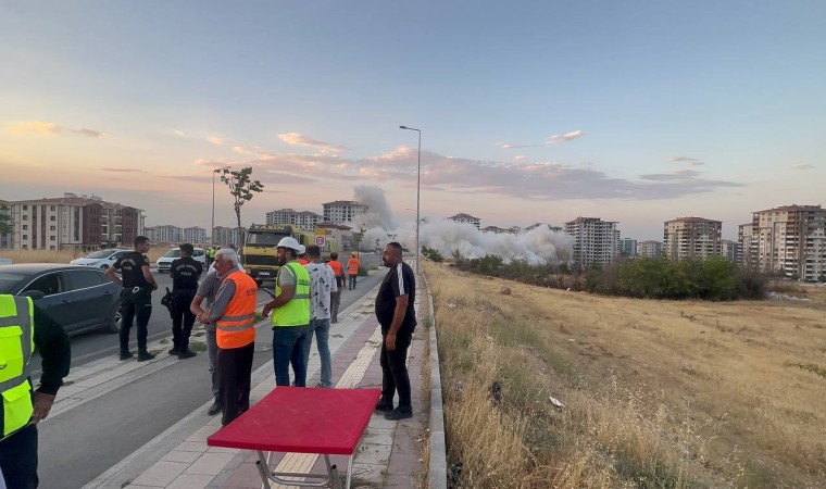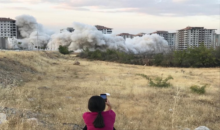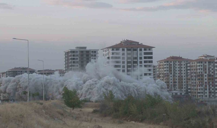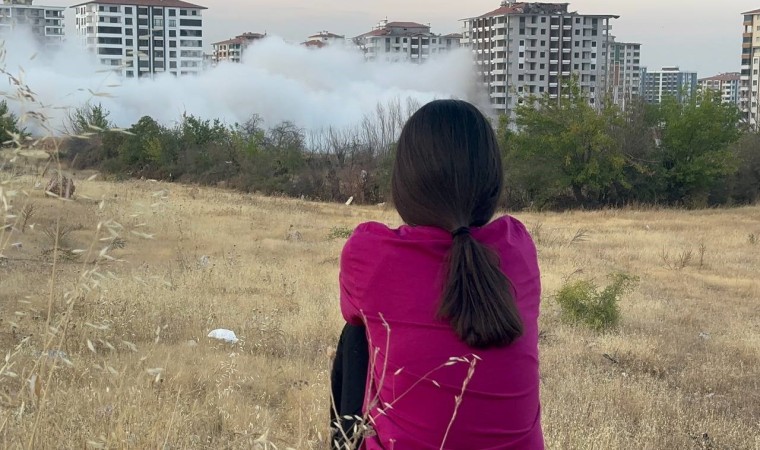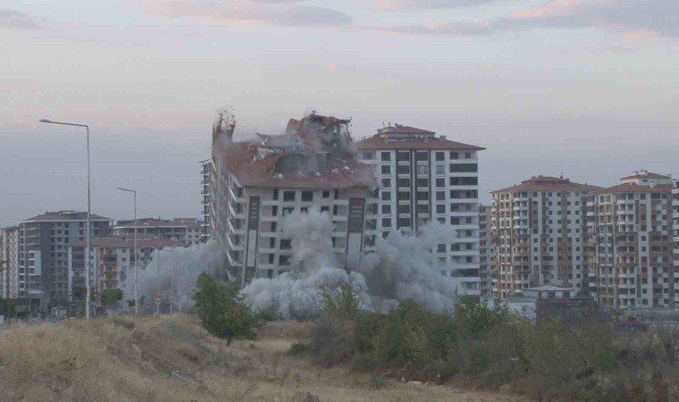 6 Şubat depreminde ağır hasar alan illerden biri olan Malatya’da yüksek katlı binaların bulunduğu Bostanbaşı Mahallesi’ndeki binaların yıkımı patlayıcı kullanılarak sürüyor. Bugün de Çiftlik Caddesi üzerinde bulunan 13 katlı Eryaman Süreyc Konutları’nın yıkımı gerçekleştirildi. Yıkım öncesi polis ekipleri bölgeye çıkan tüm yolları kapatırken, alınan önlemlerin ardından geri sayım ile birlikte 13 katlı bina patlayıcı yardımı ile saniyeler içerisinde yerle bir oldu. 224 kilo patlayıcının kullanıldığı patlatmayı canlı canlı izleyen bina sakinleri ise gözyaşlarına hakim olamadı. Site sakinlerinden Esma Koç, henüz bir yıl oturmadan depremde ağır hasar alan evlerinin yıkımını çocukları ile birlikte gözyaşları ile izleyenlerden biriydi.