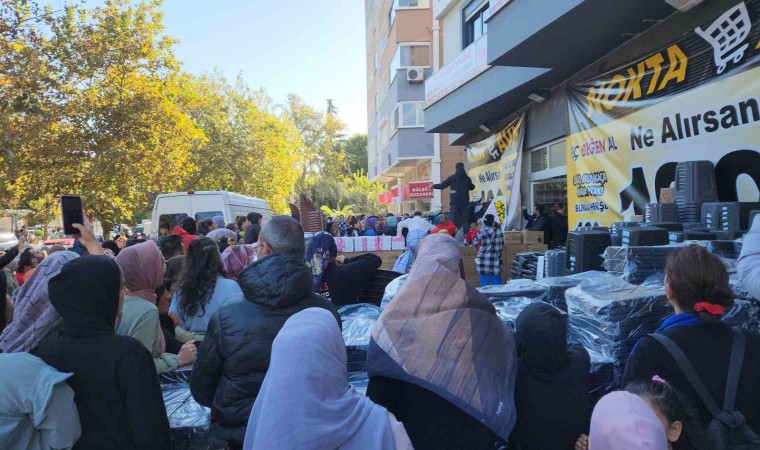 İlçede ne alırsan 100 lira kampanyası düzenleyen firmanın önünde sabah erken saatlerde yoğunluk başladı. Mağazanın açılış saati ile birlikte yoğunluk artarak yüzlerce metrelik bir kuyruk oluştu. Firma yetkilileri izdihamı engellemek için vatandaşları gruplar halinde mağazaya alarak alışveriş yapmalarına izin verdi.