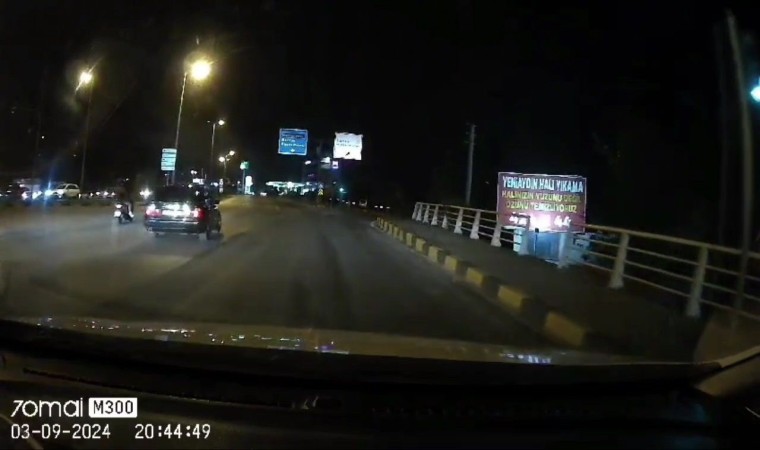 Karabük-Safranbolu kara yolu Sanayi Kavşağında mevkiinde sürücüsü ve plakası öğrenilemeyen bir otomobil, yeşil ışık yandıktan sonra zikzak çizerek yoluna devam etti. Sürücünün, motosiklette bulunan iki kişinin ve trafiği tehlikeye attığı anlar araç kamerasına yansıdı.