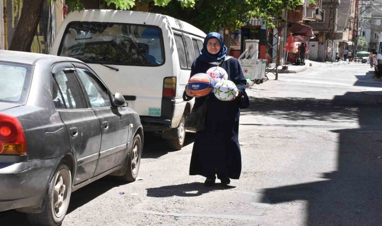 Gaziantep’te yaşayan 55 yaşındaki Sevgi Fidan, atıklar biriktirerek çocuklara futbol ve basketbol topu dağıtıyor.