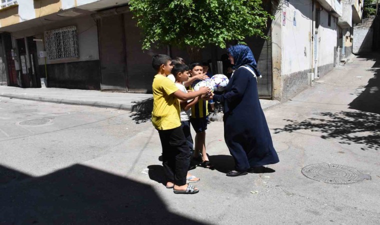 Mahalle sakinlerinden Bediha Fidan, “Çocuklar çok seviniyor. Çocuklar için çok güzel bir duygu. Topu aldıktan sonra çok mutlu oluyorlar. Sevgi hanımın yolunu bekliyorlar” diye konuştu.
