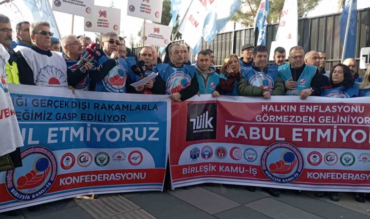 Birleşik Kamu İşgörenleri Sendikaları Konfederasyonu (Birleşik Kamu-İş) üyeleri, Türkiye İstatistik Kurumu’nun (TÜİK) açıkladığı enflasyon rakamlarının ardından TÜİK önünde eylem yaptı.