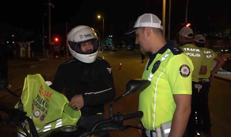 Kırıkkale İl Emniyet Müdürlüğü Trafik Tescil ve Denetleme Şubesi ekipleri, uygulama noktalarında bisiklet ve motosiklet sürücülerine reflektif yelek dağıttı. Sürücülere koruyucu ekipman kullanımının önemini anlatan ekipler, akşam saatlerinde reflektif yelek giymenin ve kask takmanın zorunlu olduğu uyarısında bulundu. "Kask tak hayatta kal, yelek giy görünür ol" yazılı reflektif yelekler, polis ekipleri tarafından sürücülere giydirildi. Özellikle motosiklet kazalarını en aza indirmek maksadıyla bilgilendirme ve farkındalık faaliyetlerinin devam edeceği belirtildi.