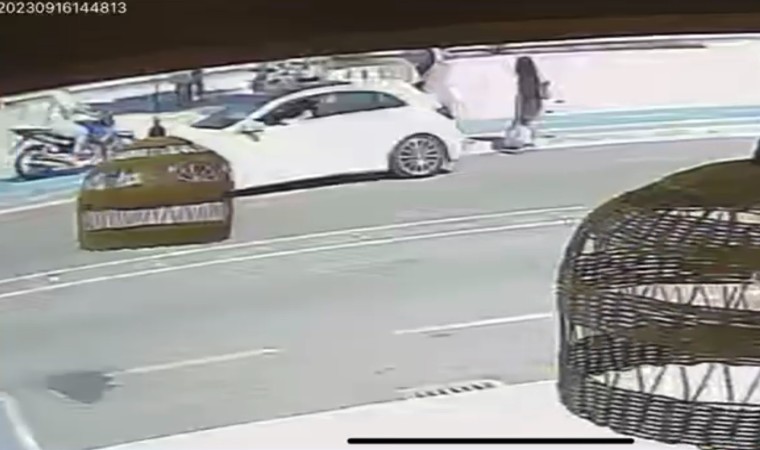 Sakarya’nın Karasu ilçesinde bisiklet yolunda motosiklet kullanan şahıs, denize gitmek için yönelen kadına çarptı. Kadın, metrelerce sürüklenirken kaza anı güvenlik kamerasına yansıdı.