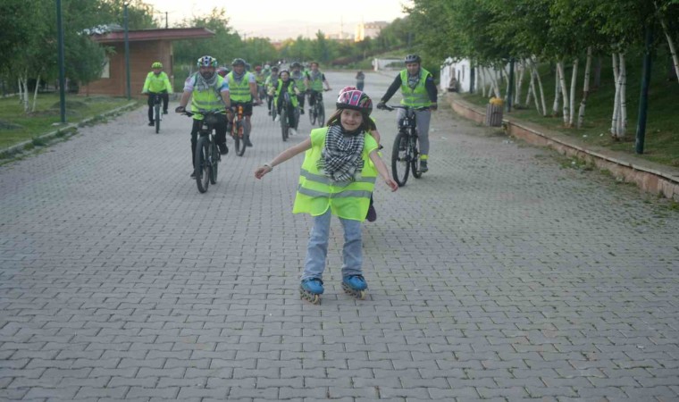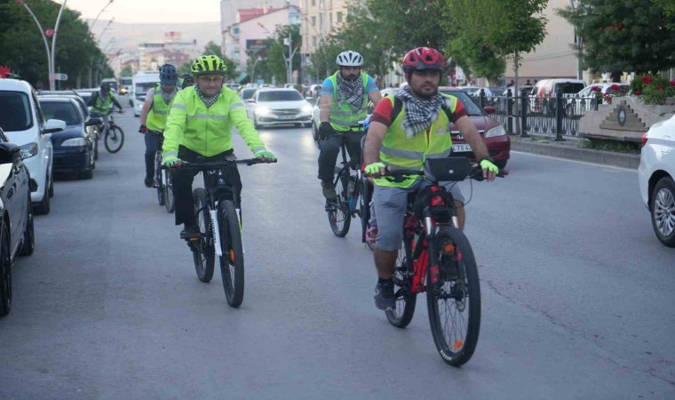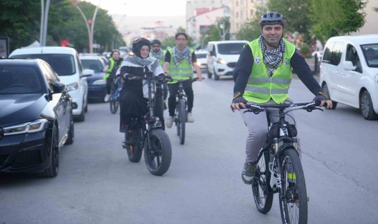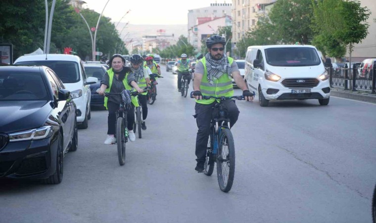 Muş’ta İsrail’in Gazze’ye saldırılarına tepki için Dünya Bisiklet Günü çerçevesinde bir araya gelen bir grup şehir turu atıp Filistin’e destek verdi.