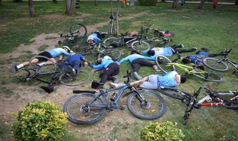 Bisikletlilerden kaza mizansenli ’farkındalık’ eylemi