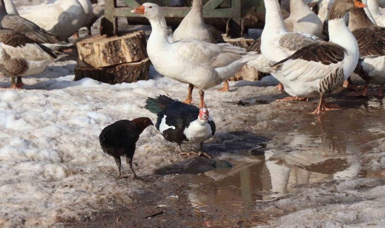 Erzurum’un Oltu ilçesinde bitkin düşen yaban kazı, kapısına kadar geldiği vatandaşın misafiri oldu. Kümeste misafir edilen yaban kazı ilk günde ördek, tavuk ve horozlar üzerinde hakimiyet kurmaya çalıştı.