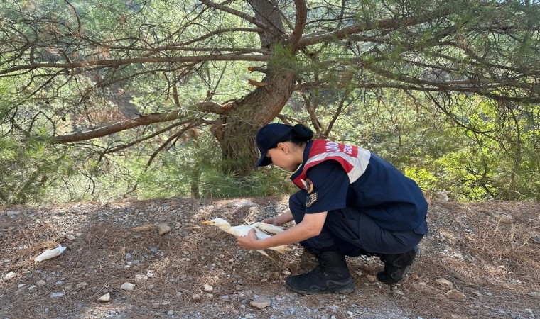 Aydın’ın Efeler ilçesinde jandarma ekipleri tarafından geçekleştirilen devriye esnasında uçamayacak şekilde yaralanan balıkçıl kuşu koruma altına alınarak Aydın Doğa Koruma ve Milli Parklar Şube Müdürlüğü ekiplerine teslim edildi.