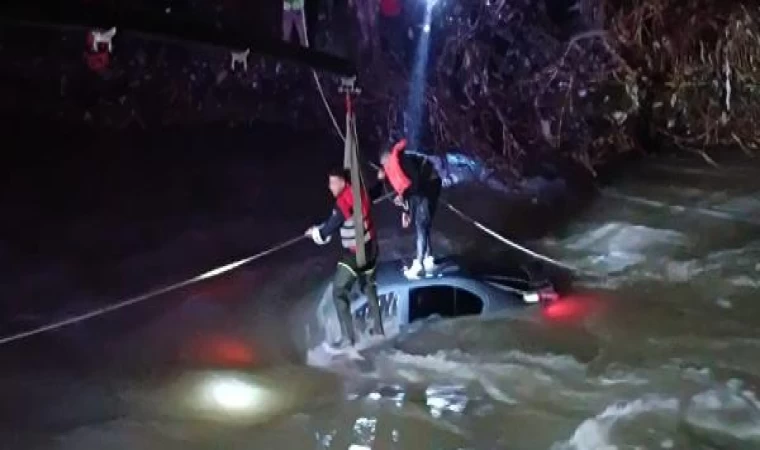 Akif ÖZALP/ SİİRT, (DHA)- SİİRT'te sürücüsünün kontrolünden çıkan otomobil, Bitlis Çayı'na uçtu. Çayın ortasında mahsur kalan ve otomobilinin üzerine çıkarak tutunan sürücü Hakan Erol (34), vinç yardımıyla kurtarıldı.