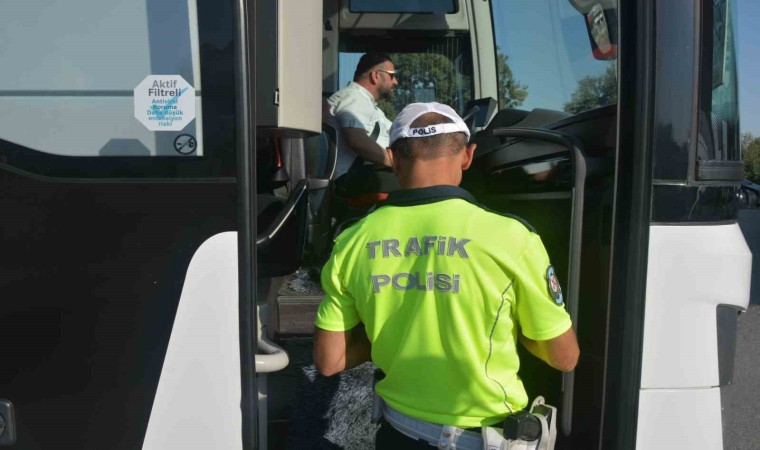 Bitlis Emniyet Müdürlüğü Trafik Şube Müdürlüğüne bağlı trafik polisi, şehirlerarası yolcu otobüsüne sivil olarak binip şoförü denetledi.