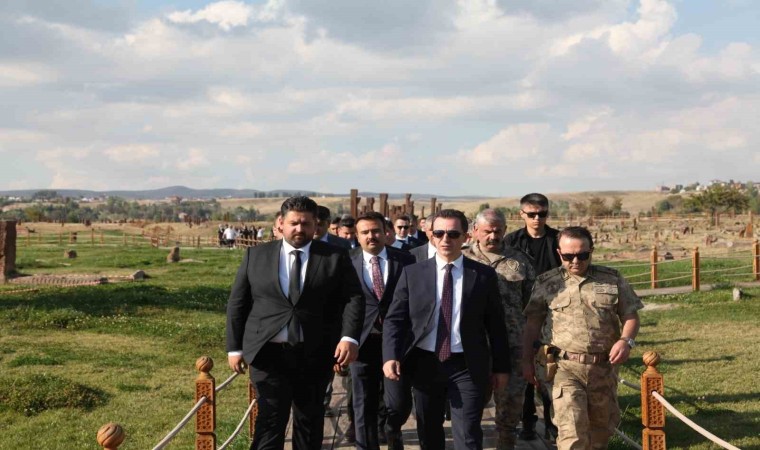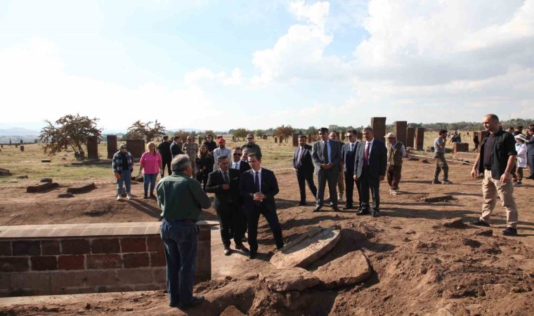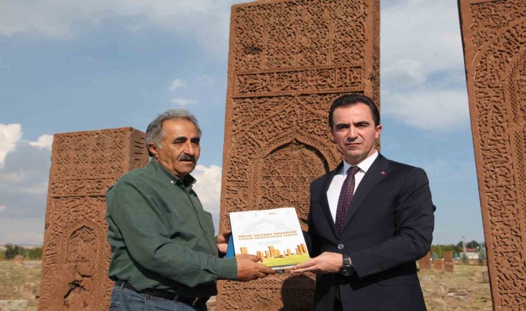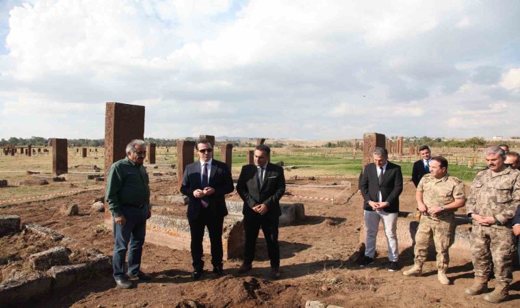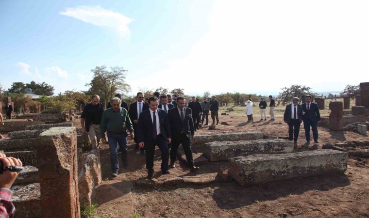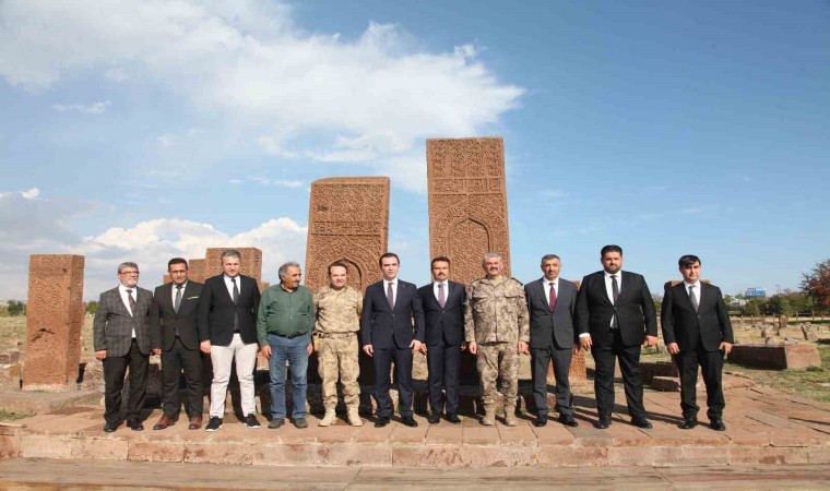 Vali Karakaya, tarihi mezar taşlarının önünde hatıra fotoğrafı çekinerek, dua ettikten sonra Ahlat ilçesinden ayrıldı.